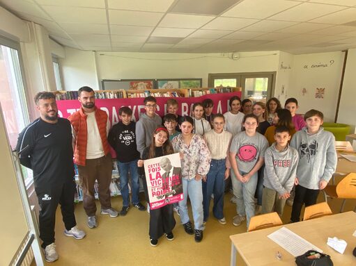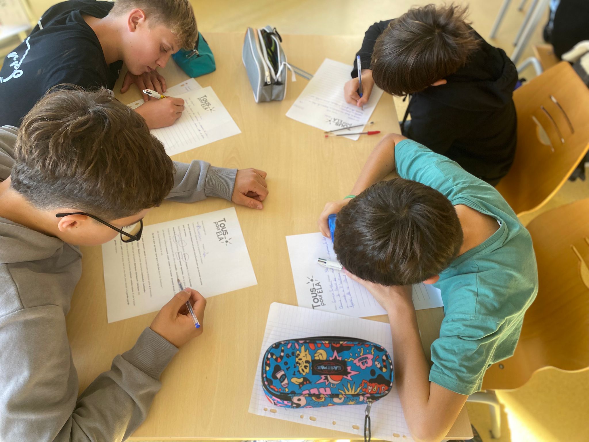 Mardi 4 novembre, les élèves volontaires de quatrièmes et de troisièmes ont participé au CDI pendant la pause méridienne à la dictée d’ELA, l’Association Européenne contre les leucodystrophies. Cette année, Benoit Pelizza, professeur d’EPS, avait demandé au rugbyman Léo Debets, joueur au RCA, de venir dicter le texte aux élèves. Ces derniers ont pu échanger avec lui au sujet du monde du handicap. En effet, Léo Debets soutient l’association « Jouez dans l’intervalle » qui oeuvre pour les personnes atteintes de la maladie de Duchenne. Merci aux enseignants qui ont soutenu ce projet, aux élèves volontaires et à Léo Debets pour ce beau moment partagé!